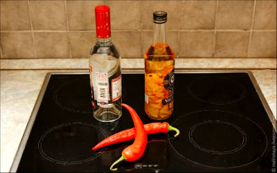 Перцовка продается в аптеке, но если вы сделаете ее сами, то точно будете уверены в ее качестве и натуральности. Для этого вам понадобится 2 или 3 стручка жгучего красного перца и 1 стакан водки. Измельчите красный перец, залейте водкой, и в темном месте настаивайте 2 недели.